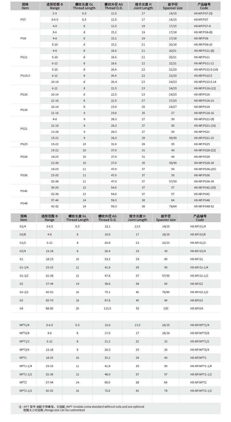 M8-M63 PG7-PG48 G1/4"-G3" NPT1/4"-NPT2-1/2"