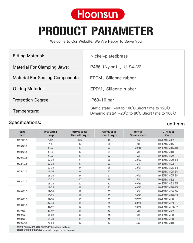 M12-M80 PG7-PG48 G1/4-G2 NPT1/4-NPT2