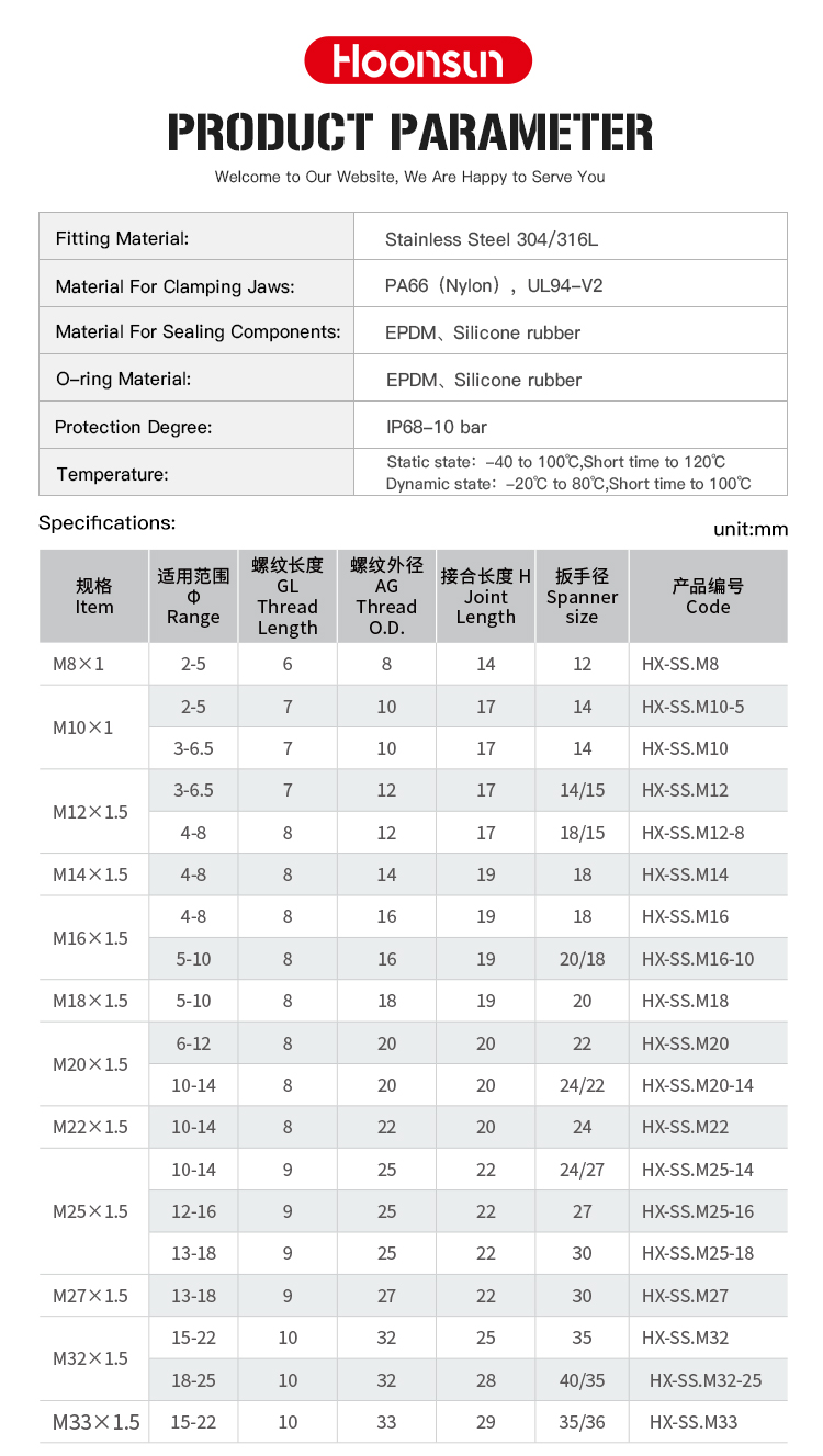 M8-M72 PG7-PG63 G1/4-G3 NPT1/4-NPT3